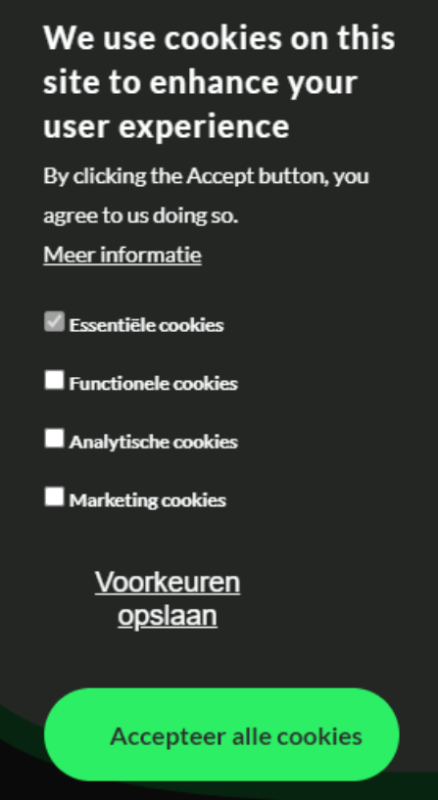 Cookies verzamelen gegevens van bezoekers op je website en andere platformen. Via deze cookies vraag je websitebezoekers of ze akkoord gaan met het registreren van hun gegevens. Deze tool wordt geïmplementeerd op je website en garandeert dat alleen de data waarvoor de bezoeker toestemming heeft gegeven, wordt verzameld.
